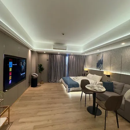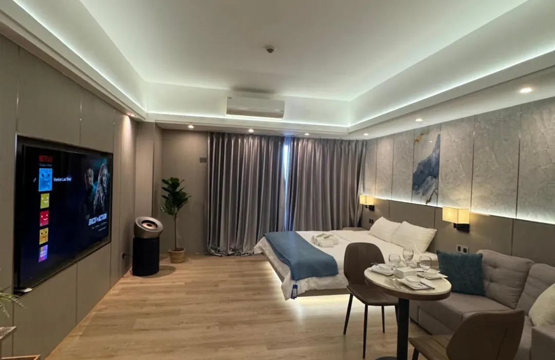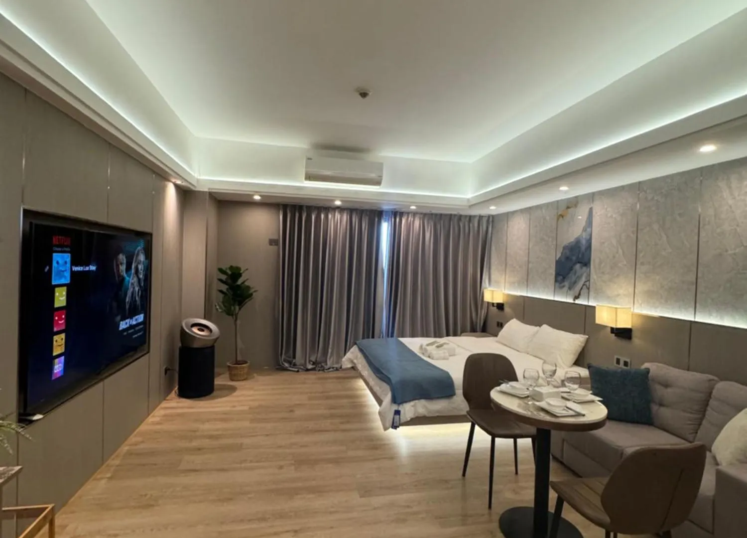 Die Unterkünfte bietet einen Balkon, eine Terrasse und einen Ankleidebereich mit einer Klimaanlage und einer Waschmaschine für höchsten Komfort. Für Ihren Komfort stehen Ihnen im Venice Luxe Stay, Studio Type, King Bed, 65 Tv-Netflix 40平方四人公寓 厨具齐全 eine getrennte Toilette und eine Dusche zur Verfügung. Außerdem finden Sie hier einen Haartrockner, Badelaken und Hausschuhe.